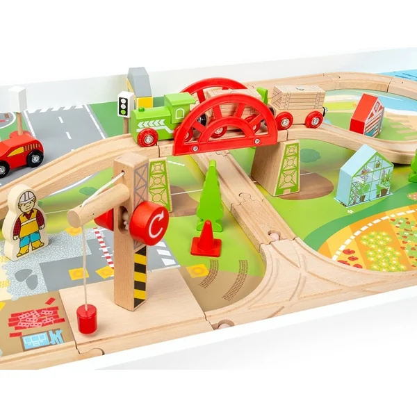 Imaginez votre enfant passant des heures et des heures à créer des mondes. Apprendre en jouant n’a jamais été aussi amusant, avec Bigjigs Rail Chemin de fer en bois et table.