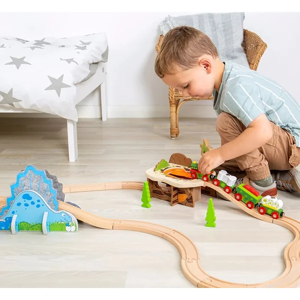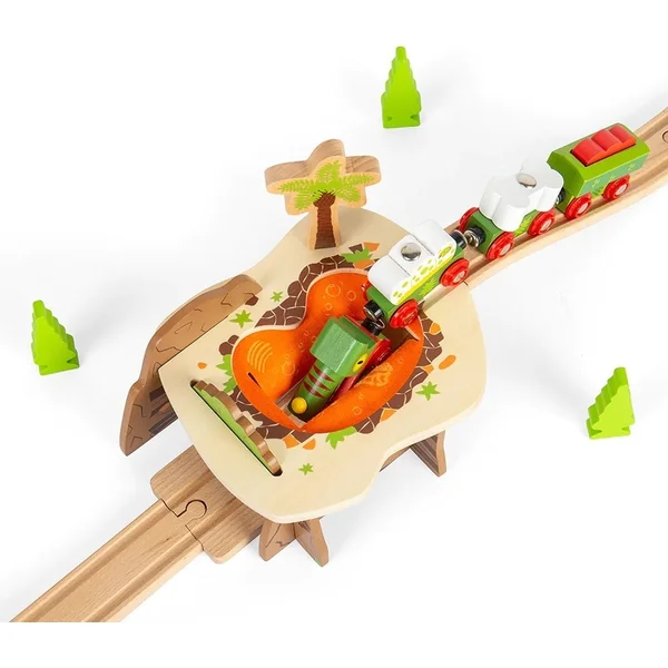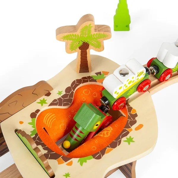 Un tunnel de chemin de fer comme une fosse de lave ! Le train des enfants survivra-t-il à cette lave en feutre ? Il contient aussi un palmier et de magnifiques illustrations préhistoriques. Un jeu imaginatif aide au développement de la créativité, des compétences sociales et du langage. Il s’intégrera parfaitement dans le circuit de train dinosaure.