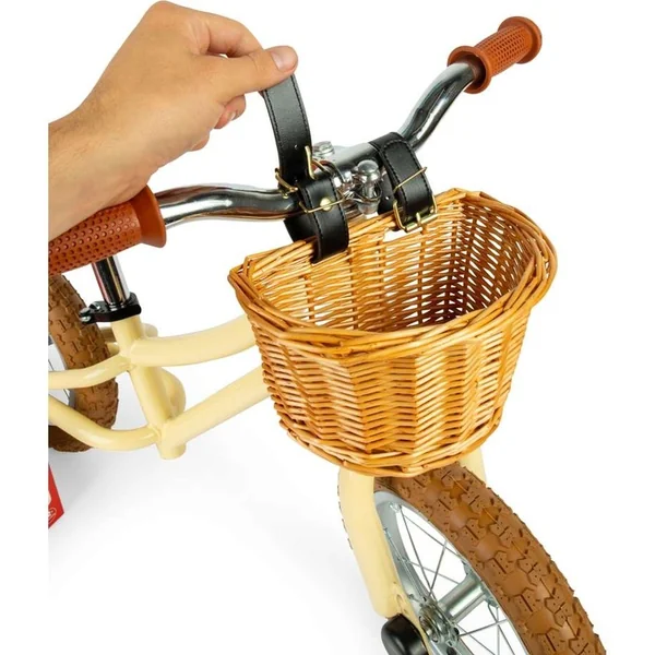 Le vélo est équipé d’un panier en osier pratique et d’un ensemble d’autocollants pour personnaliser le vélo. Le vélo est fabriqué à partir de matériaux de première qualité et est traité avec des peintures et des vernis non toxiques. Il respecte les normes de sécurité européennes actuelles.