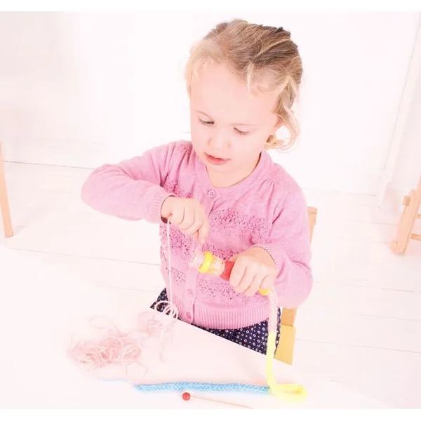 Suivez les instructions sur la boîte et commencez à tricoter ! La laine se trouve dans l’emballage, il suffit d’avoir des doigts habiles et un esprit créatif. Pour retirer le fil, vous pouvez utiliser l’aiguille en bois qui fait également partie de l’emballage.