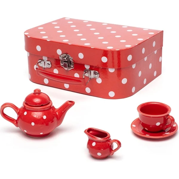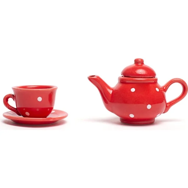 Profitez d’un élégant goûter avec cette théière en porcelaine. Elle comprend quatre tasses et sous-tasses, une théière, un sucrier et un cruchon à lait. Après le jeu, ou lorsque vient le temps de voyager, rangez simplement la théière en toute sécurité à des endroits appropriés dans la valise. Elle respecte les normes de sécurité européennes en vigueur.