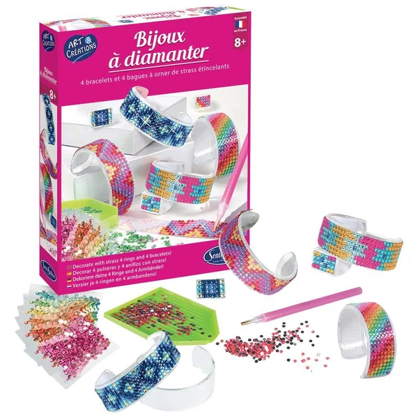 Habiller de strass avec de jolis motifs ethniques 4 bracelets et 4 bagues, telle est l’activité proposée avec ce coffre. Idéale pour les jeunes adolescentes et jeunes femmes car il contient 2 tailles de bagues et de bracelets.