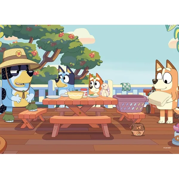 Amusez-vous à reconstituer les plus belles scènes du dessin animé Bluey et, après avoir terminé le puzzle, le plaisir continue ! Au dos de la planche, vous trouverez une scène en noir et blanc à colorier ! Dimensions du puzzle assemblé : 35 x 25 cm.