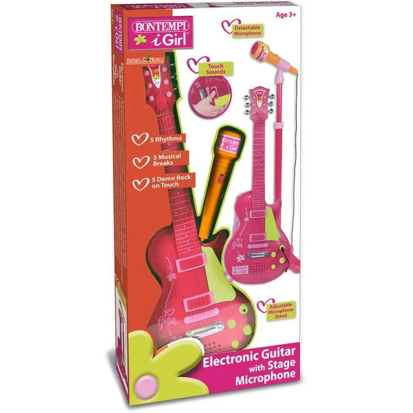 BONTEMPI GUITARE ELECTRIQUE ROSE 112 CM – MICRO SUR PIED