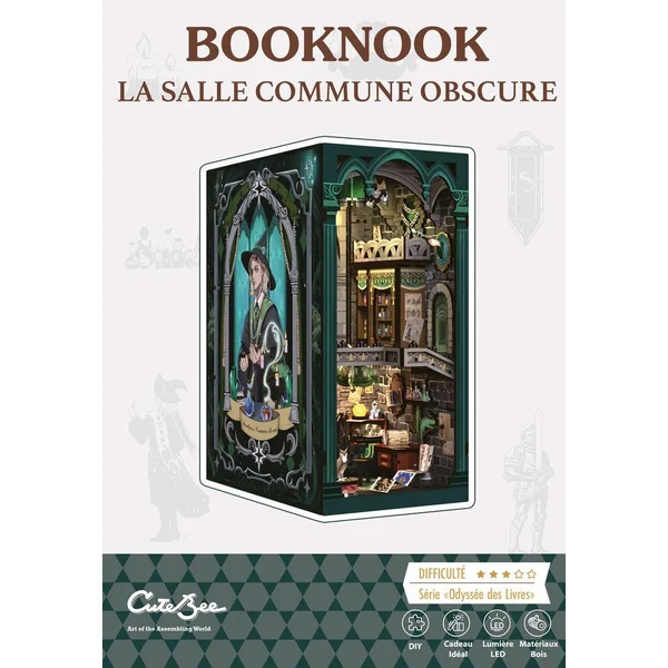 Un Booknook est une petite scène ou un diorama à construire soit même, qui se glisse entre les livres sur une étagère. Ils donnent l’impression d’une fenêtre vers un autre monde, comme si la bibliothèque abritait une porte secrète ou une ruelle magique.