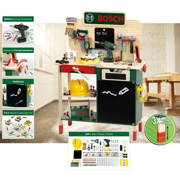 – Une visseuse Bosch aux fonctions électroniques réalistes : bruitage, fonction lumineuse, double sens de rotation, deux vitesses de fonctionnement. Livrée avec 4 embouts interchangeables.