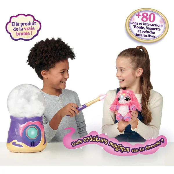 Donne vie à ta boule de cristal à l’aide de ta baguette magique incluse et fais apparaître ta créature interactive (peluche de 20 cm) ! Effets sonores et lumineux. Accessoires inclus. Avec une batterie 3.7V Li-ion. Câble de recharge fourni.