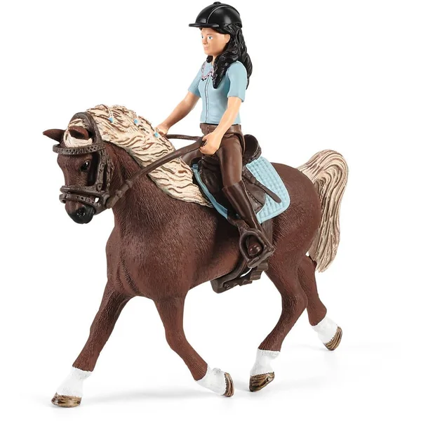 Après l’entraînement, Emily récompense sa jument holstein avec une douche fraîche dans le box de lavage moderne. Elle guide Luna sur le tapis en caoutchouc antiglisse et prend le tuyau qui est suspendu à un bras pivotant pratique. Elle lui lave tout d’abord délicatement les jambes et poursuit ensuite son encolure et son dos. Les figurines Schleich sont toutes sculptées avec des détails plein de réalisme, peintes avec amour pour des moments de jeu pédagogiques. Contient 1 figurine articulée (avec cheveux corps et jambes interchangeables), 1 jument et plus de 10 accessoires.