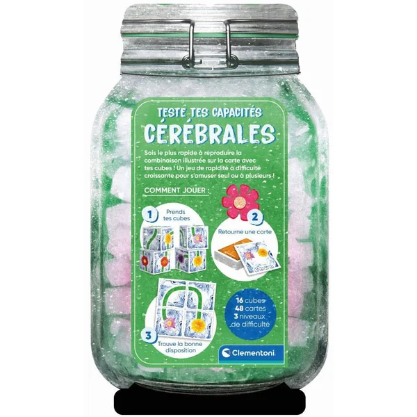 Un nouveau concept qui mixe la logique d’un casse-tête et l’ambiance amusante du jeu de société ! Retournez la carte et résolvez le casse-tête le plus rapidement possible ! Le joueur le plus rapide à recomposer l’image affichée sur la carte en utilisant les cubes obtiendra un point. Le joueur avec le plus de points gagne la partie. Avec plusieurs niveaux de difficulté pour vous défier vous-même ou défier vos amis.