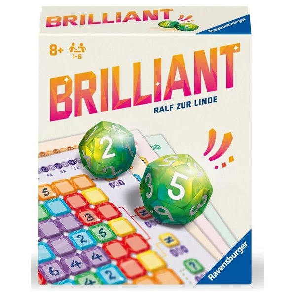 Brilliant est un Roll and Write accessible et facile pour toute la famille ! Dans ce jeu, vous allez devoir obtenir le plus de diamant possible avant vos adversaires. Dans ce jeu tout le monde joue en même temps, un joueur lance les dés puis chacun doit écrire l’un des deux chiffres sur sa fiche. Attention, le chiffre doit être inscrit sur une case orthogonalement adjacent à une case contenant l’autre chiffre. En plus de cela les joueurs doivent respecter des contraintes de remplissage pour chaque zone : Que des chiffres différents, le même chiffre, seulement les chiffres impairs, etc… Brilliant est donc un jeu pour toute la famille, accessible et familial.