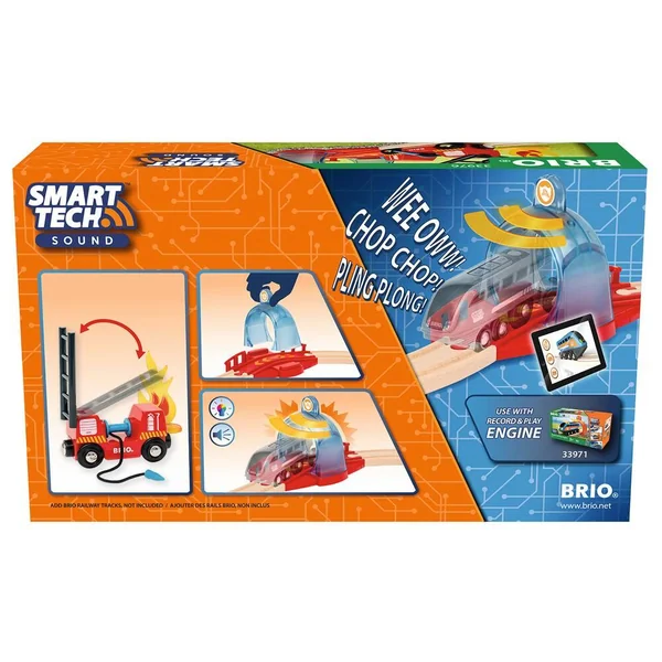 Un incendie s’est déclaré à l’autre bout du circuit ! Vite, viens l’éteindre grâce au portique Smart Tech Sound et ses accessoires pompier ! Inclus : un portique pompier, une plateforme, un véhicule incendie, une figurine et des accessoires sur le thème pompier. En l’associant à la Locomotive à enregistreur vocal Smart Tech Sound (non incluse), tu pourras programmer le jeu avec des fonctionnalités Smart Tech Sound telles que des mouvements, des lumières colorées et des sons personnalisables. Davantage d’options de personnalisation sont disponibles en appairant la locomotive à l’application Smart Tech Sound. Compatible avec l’ensemble des trains, rails et accessoires BRIO World. Fabriqué à partir de bois de hêtre européen certifié FSC et de plastique de haute qualité. La gamme BRIO World est préconisée à partir de 3 ans mais aucune petites pièces ne sont incluses : ce qui rend le jouet sans danger pour les petits frères et sours de moins de 3 ans.