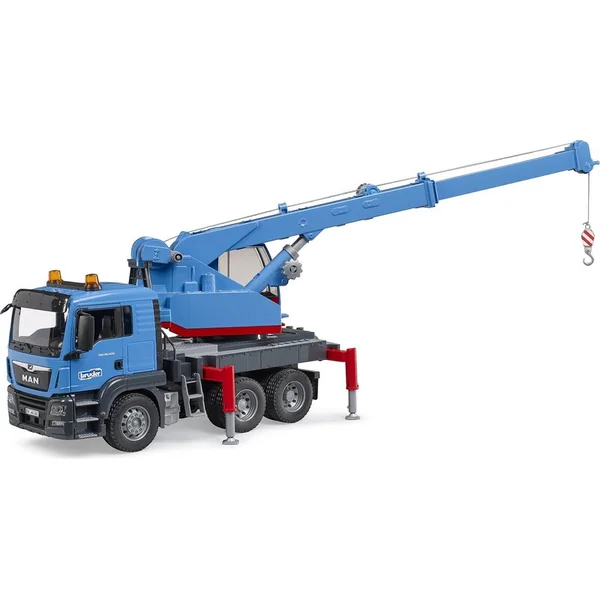 Le modèle de grue mobile MAN TGS est un assistant indispensable sur chaque chantier dans la chambre d’enfant. Partout où il faut soulever et déplacer des charges, vous trouverez ce modèle à l’échelle 1:16.
