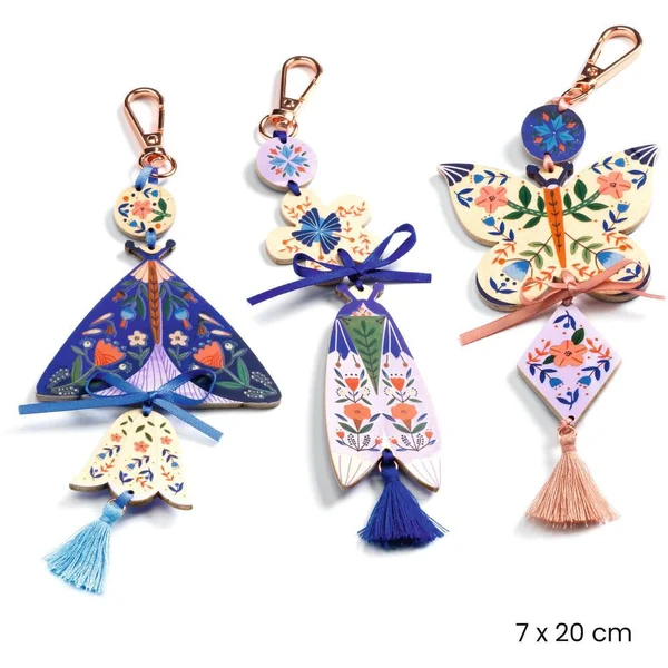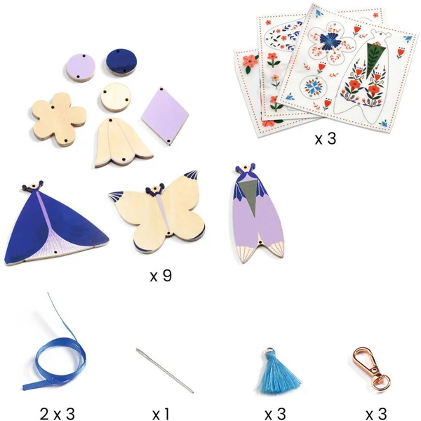 3 jolis bijoux en bois à confectionner avec plus de 100 décalcomanies et accessoires. Une fois terminé, il décore parfaitement son sac ou son porte-clés.