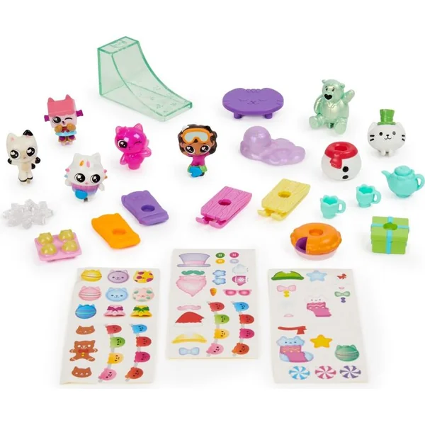 Parmi les surprises, les petites filles peuvent découvrir la figurine de Gábina, de la Boîte, de Dorťák, de Ryboočky, une figurine exclusive avec une surface nacrée, des meubles pour la maison, des accessoires, et même un vélo russe pour les chatons hamsters.