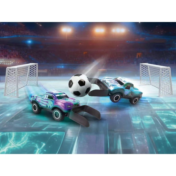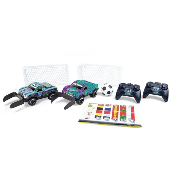 Calendrier de l’Avent Revell Control : Set de deux véhicules RC 2 voies / 2,4 GHz, deux buts et un ballon. Les pelles de guidage sur les voitures permettent de diriger le ballon dans les buts. Éclairage LED impressionnant. Véhicules de 17 cm de long chacun. 10 Piles (2 par véhicule et 3 par Radiocommande) 1,5 V (AA) nécessaires, non incluses. A partir de 6 ans.