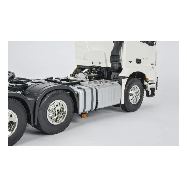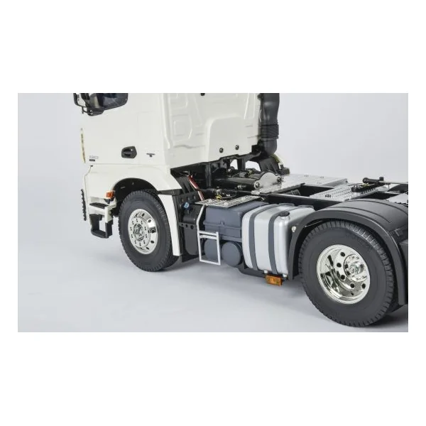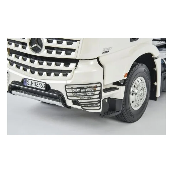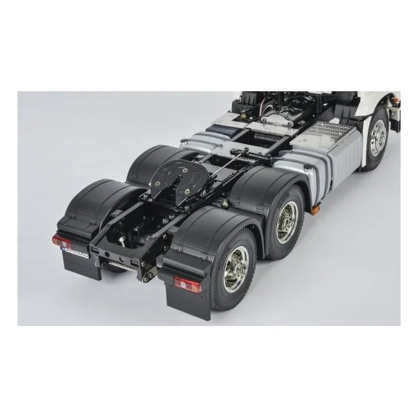 Ce camion Mercredes Arocs 3363 possède 3 esseiux, tout premier modèle de tracteur européen dans la série de camions chez Tamiya !
