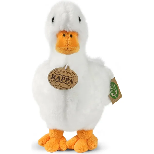 Le canard en peluche mesure 24 cm et grâce aux matériaux de la plus haute qualité, il fait partie de la Collection Exclusive de jouets en peluche de la marque Rappa. Grâce à la fabrication manuelle de chaque pièce, il a en plus l’apparence d’un vrai.