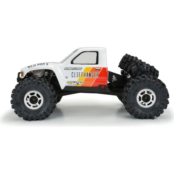 Carrosserie Pro-Line, pour tous les fans de camions, vous pouvez maintenant obtenir le style Cliffhanger au format uniquement avec cabine. Ce design de style JDM des années 80 a une partie avant agressive de style course et est prêt pour la monteur de votre plateau que vous pouvez compléter selon votre imagination et vos possibilités. Le Cliffhanger est fabriqué en un seul morceau de polycarbonate transparent et comprend des phares en polycarbonate. Il contient une feuille de décalcomanies, des masques pour les fenêtres et un film de peinture à pulvériser, puis à décoller. Ne restez pas en arrière sur les rochers, achetez votre propre carrosserie Cliffhanger dès aujourd’hui !
