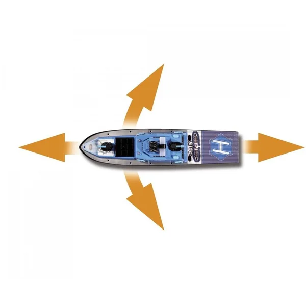 Doté d’un système radio 2,4GHz avec une portée pouvant atteindre 100 mètres, ce bateau RC offre des commandes précises et stables. Son canon à eau orientable et activable depuis l’émetteur, ainsi que ses feux LED et projecteur commandables à distance, renforcent le réalisme. La double motorisation brushed à couple élevé assure une propulsion efficace, tandis que le dispositif de sécurité coupe automatiquement les hélices hors de l’eau.