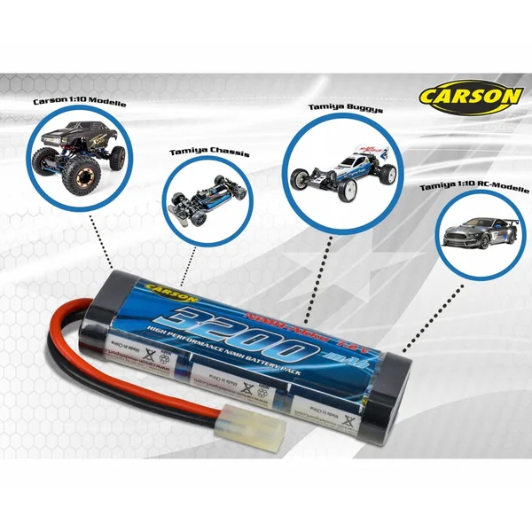 | Description | Carson Batterie NiMH 7,2V/3200mAh Racing Pack – 500608213