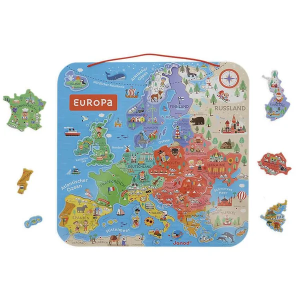 Et si on apprenait la géographie en s’amusant, grâce à ce tour d’Europe en 40 magnets ? Le grand tableau magnétique représente l’Europe avec ses différents pays, ses mers et ses océans. Sur ce tableau, vous retrouverez 40 magnets : chaque magnet représente un pays ou une région, avec son nom, sa capitale et une illustration caractérisant cette partie du monde. Votre enfant apprendra la géographie de facon ludique et pédagogique en s’amusant à remettre chaque pays à sa place. La carte est très pratique et permet de s’accrocher partout grâce à sa ficelle en coton. Jouet magnétique et éducatif pour les enfants –