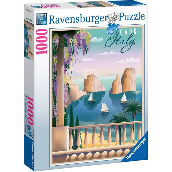Pour les puzzleurs entraînés, le format 1000 pièces est idéal pour profiter de l’activité du puzzle, propice à la détente et à la relaxation. Chaque pièce a une forme unique et permet un assemblage parfait de l’image choisie. Admirez les moindres détails de cette affiche de Capri ! Nos puzzles sont parfaits pour se détendre après une journée de travail ou d’école et pour passer un bon moment en famille. La qualité des puzzles Ravensburger est reconnue et appréciée. Faites partie des millions de personnes qui ont goûté au monde ludique des puzzles avec des produits Ravensburger de qualité. Chaque pièce de puzzle a sa propre forme, elle est ainsi unique, et elles s’assemblent parfaitement entre elles.