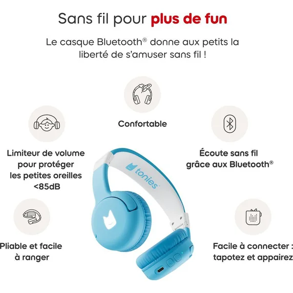 Casque bluetooth bleu ciel – Les nouveaux Casques Bluetooth tonies® sans fils, confortables et sécurisés : le casque qui libère l’imagination des petits auditeurs.