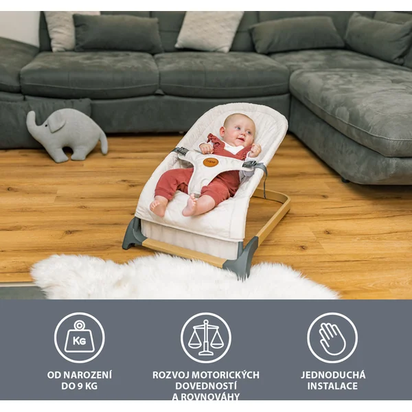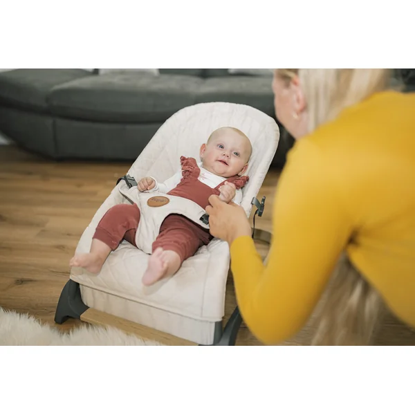 Grâce à sa construction métallique solide et flexible, le transat permet de balancer l’enfant en fonction de son propre poids ou les parents peuvent le bercer. Le balancement est donc complètement naturel. Le bébé apprend rapidement à se balancer dans le transat, développant ainsi ses compétences motrices et son équilibre.