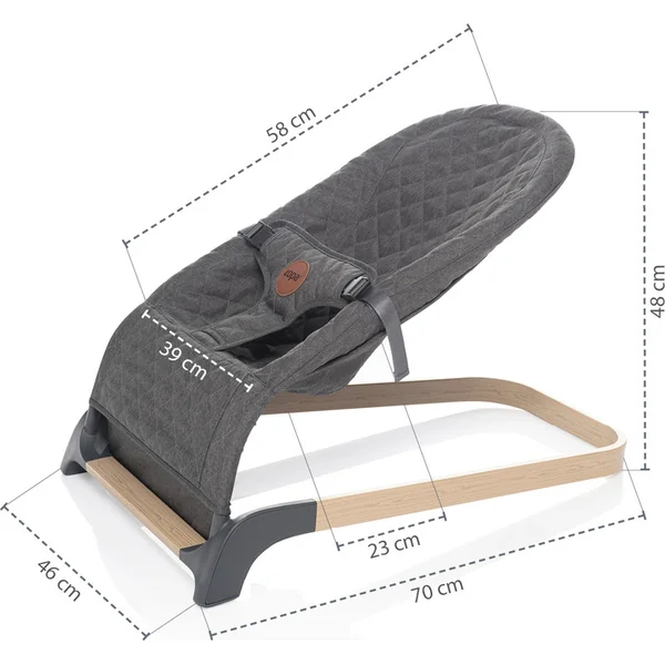 Le transat est léger et facilement portable. Il est donc idéal pour une utilisation à la maison ou en voyage. Grâce à son design moderne avec un décor en bois, il s’intègre facilement dans n’importe quel intérieur. L’installation du transat est très simple et lorsqu’il n’est pas utilisé, il peut être plié en dimensions compactes. Le transat respecte la norme de sécurité EN 12790.
