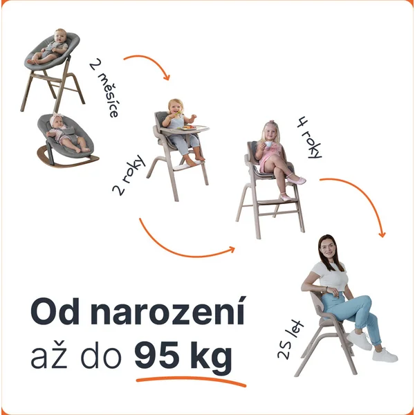 La chaise Zopa Inspira n’est pas seulement pour quelques mois – grâce à la hauteur de siège et au repose-pieds réglables, elle s’adapte à chaque étape de la croissance. En mode enfant, elle convient de 6 mois à 15 kg, et en version junior, elle supporte jusqu’à 95 kg.