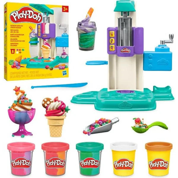 Plongez dans un jeu créatif avec le set Play-Doh Rainbow Swirl Ice Cream ! Créez la glace la plus colorée avec Play-Doh et une bordure unique en arc-en-ciel. Créez votre propre saveur avec n’importe quelle bordure colorée ou mélangez-les pour un effet arc-en-ciel. Créez des étoiles et des points que vous pouvez verser dans la machine ou utiliser comme décoration. Une base rotative pour créer le tourbillon de couleur parfait.