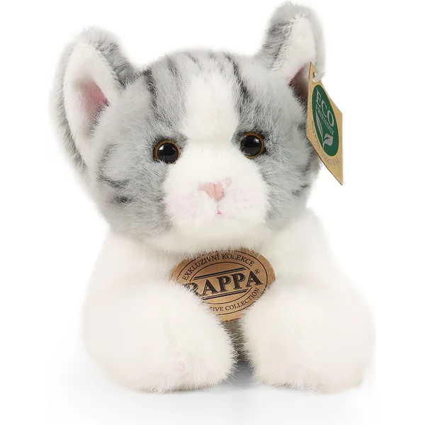Un chat en peluche de couleur gris et blanc mesure 20 cm et fait partie de la collection exclusive de jouets en peluche de la marque Rappa grâce à des matériaux de la plus haute qualité. Grâce à la fabrication manuelle de chaque pièce, il a également l’air vivant.