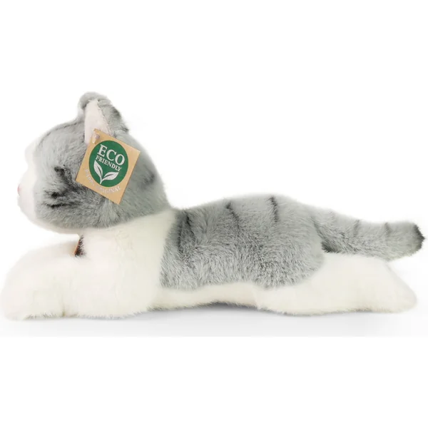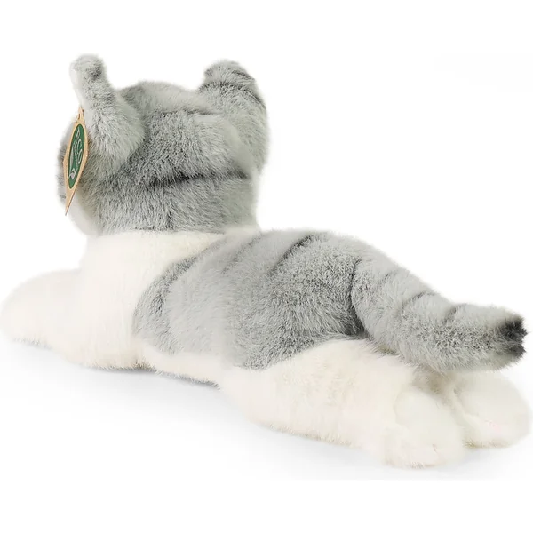 Chat en peluche gris couché 20 cm ÉCOLOGIQUE