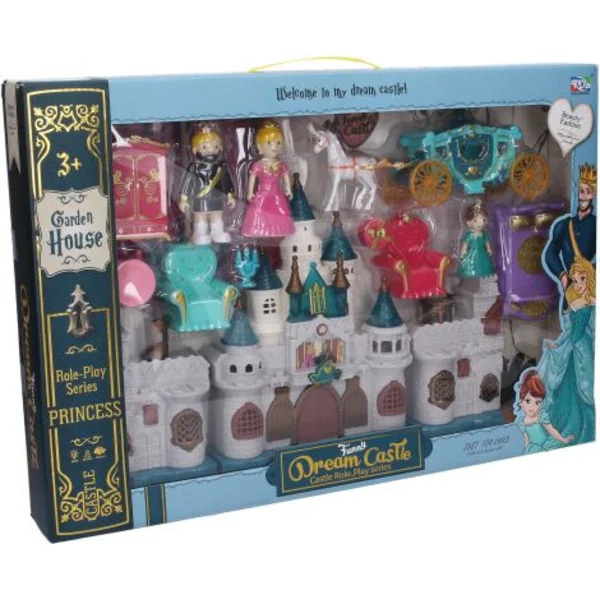 - Contenu de l’emballage : château, 3 figurines, meubles, carrosse avec cheval