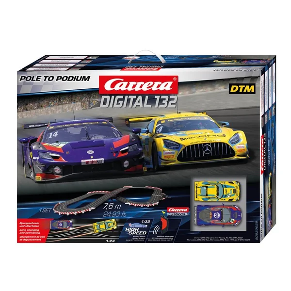 Circuit Carrera Digital 132 Victory Circuit – 20030047Plongez au cœur de la course automobile avec le Circuit Carrera Digital 132 Victory Circuit. Cet ensemble propose une piste de 7,3 mètres où vitesse, tactique et adrénaline se rencontrent. Avec deux voitures emblématiques, ce circuit est une véritable célébration du sport automobile. Affrontez la piste avec la McLaren 720S GT3 « Dörr Motorsport, No.85 » et l’Audi R8 LMS GT3 « Abt Sportsline – Red Bull, No.8 », deux stars du championnat DTM 2024. Avec son profil aérodynamique et ses lignes affûtées, la McLaren impressionne par sa légèreté et sa réactivité. En face, l’Audi R8, parée des couleurs Red Bull, combine puissance allemande et style agressif. Fidèlement reproduites à l’échelle 1:32, ces deux GT de dernière génération vous garantissent une immersion totale et une précision de conduite exceptionnelle sur votre circuit Carrera. Caractéristiques de ce Circuit Carrera Digital 132 Victory Circuit