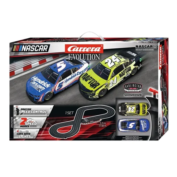 Apportez la puissance des moteurs NASCAR chez vous avec le Circuit Carrera Evolution NASCAR Darlington Showdown. Ce circuit de 5,3 mètres offre des lignes droites longues et des virages serrés, idéaux pour des courses palpitantes et des duels à grande vitesse. Inspiré du sport automobile numéro un aux États-Unis, cet ensemble vous plonge au cœur de la compétition.