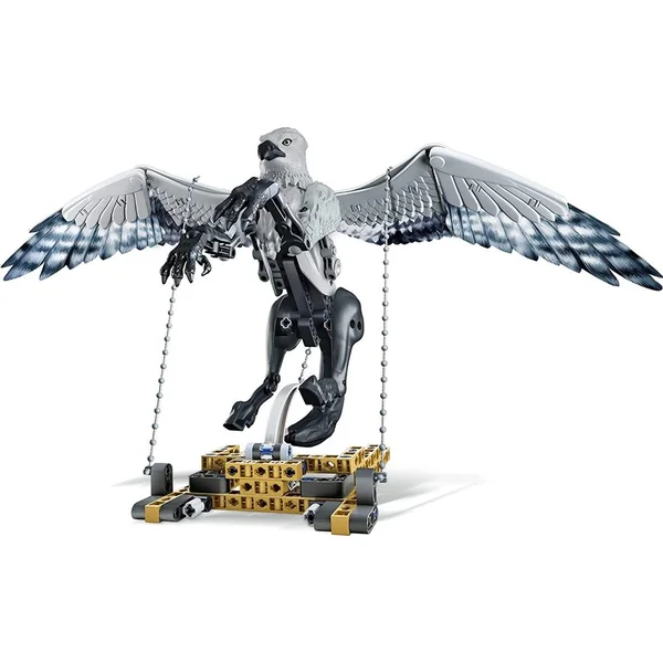 - En reliant des chaînes à la construction pour soutenir Buck, l’enfant fait l’expérience de la façon dont la tension agit, de sorte que l’hippogriffe semble être suspendu dans les airs.