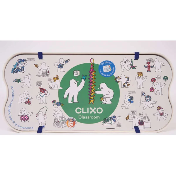 CLIXO Classroom – 100 pièces est un ensemble de construction flexible, très léger et magnétique dans une combinaison de couleurs variées, inspiré par l’origami et c’est aussi un excellent jouet Montessori. Cet ensemble de construction est basé sur le principe de l’assemblage de différentes formes et pièces en reliant des aimants rouges et bleus entre eux. Le kit Classroom est le dernier produit de Clixo, comprenant également un guide pour les éducateurs et 30 cartes avec des idées d’activités. Il permet de créer des constructions architecturales, des modèles scientifiques – par exemple des molécules, des atomes ou des systèmes planétaires. Les enfants artistiques peuvent créer des images abstraites, des sculptures et les enfants créatifs peuvent concevoir leurs propres jouets ou surfaces de jeu pour des jeux de société. Des inspirations pour différentes constructions se trouvent sur l’emballage en papier, qui constitue l’emballage du produit. Dans cet emballage magique se cache un monde de découvertes amusantes!