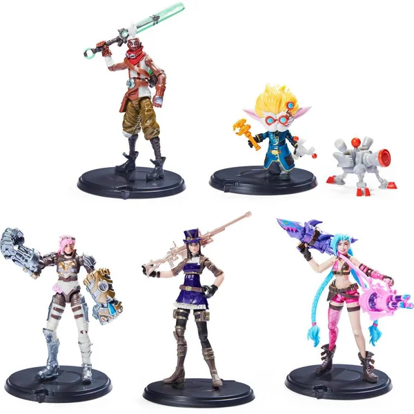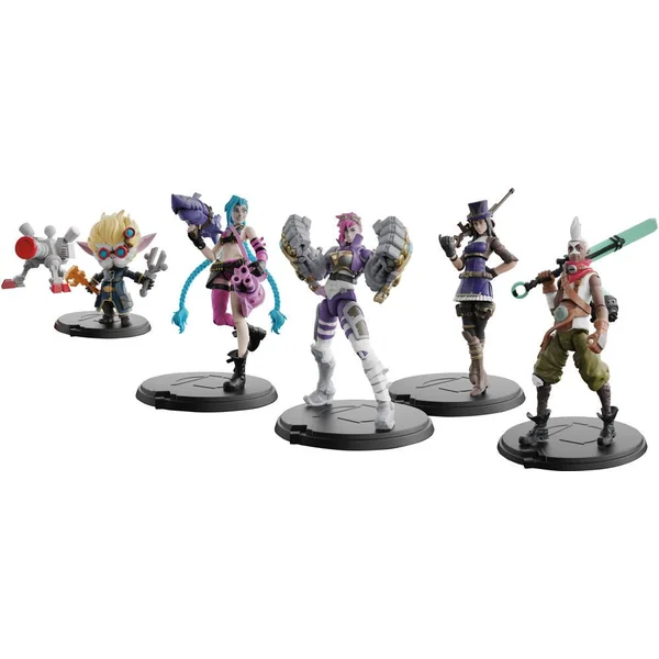 Les figurines officielles du jeu E-Sport n°1 avec 100 millions d’utilisateurs actifs. Ce coffret des Deux Cités contient 5 figurines de 10 cm avec les personnages de : Heimerdinger, Vi, Ekko, Jinx et Caitlyn.