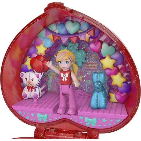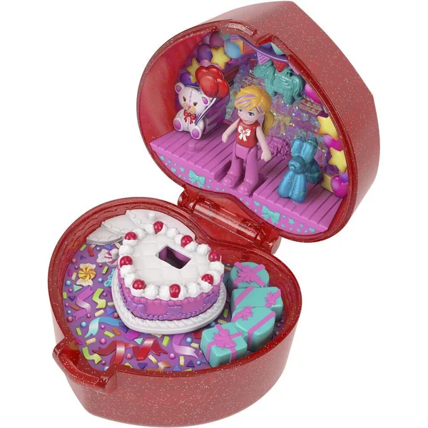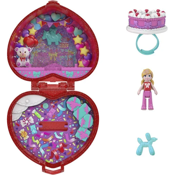 Ce cœur pailleté translucide couleur rubis joue les écrins. Surprise ! 1 bague d’anniversaire avec Polly et son chiot ballon est glissée à l’intérieur.
