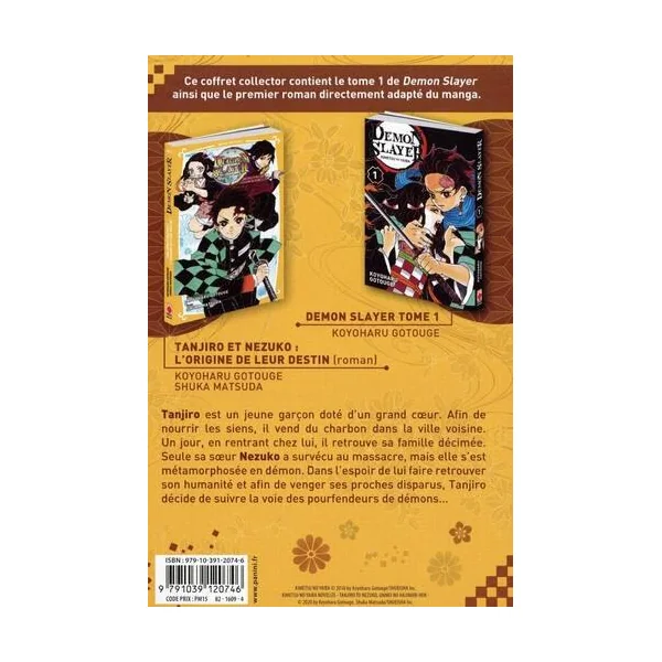 Le Japon, au début du XXe siècle. Tanjiro, un jeune marchand de charbon, mène une vie paisible et heureuse, entouré de sa mère et de ses frères et soeurs. Mais un jour, tandis qu’il revient du village, il découvre sa famille entièrement décimée. La seule survivante de cette tragédie est sa jeune soeur Nezuko qui semble être possédée. Dans l’espoir de la sauver et de venger sa famille, Tanjiro décide de suivre la voie des pourfendeurs de démons…Plus qu’un manga, un phénomène ! Si la série principale de Koyoharu Gotouge s’est achevée avec le 23e tome, les nombreux projets autour de la licence continuent d’éveiller l’intérêt des fans, qui vont se ruer au cinéma pour voir la troisième saison de l’anime à partir d’avril ! Ce mois-ci nous proposons plusieurs nouveautés dont ce roman jeunesse qui adapte cette grande épopée à un jeune public.
