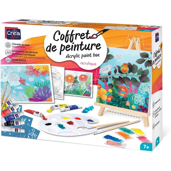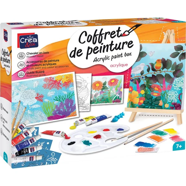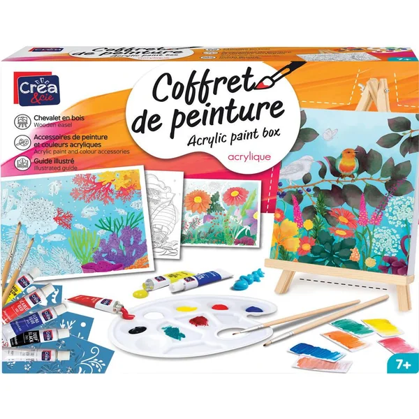 Coffret atelier peinture acrylique complet avec tout le nécessaire pour faire de jolies créations.