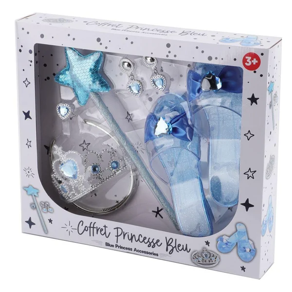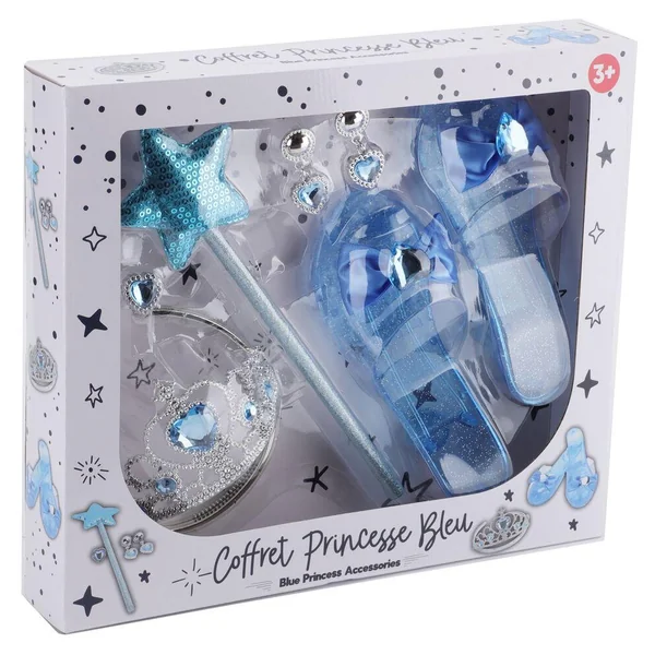 Coffret contenant : un diadème, une bague, une paire de boucles d’oreilles, une paire de chaussures et une baguette.