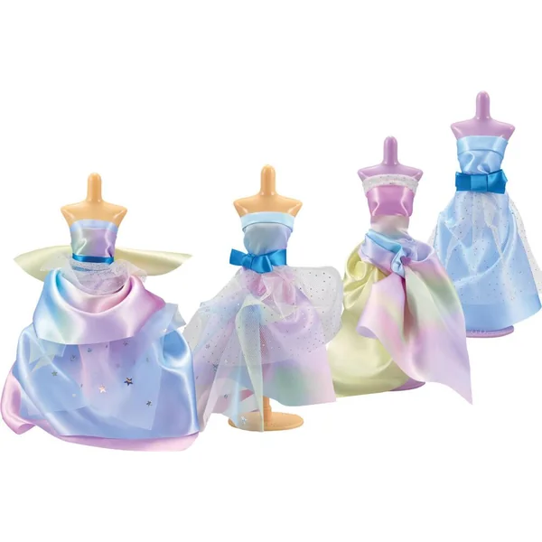 Crée ta robe de bal sans fil, sans aiguilles et sans colle c’est simple et ludique. Contient 2 bustes, 6 tissus, 20 pins et 1 stick.