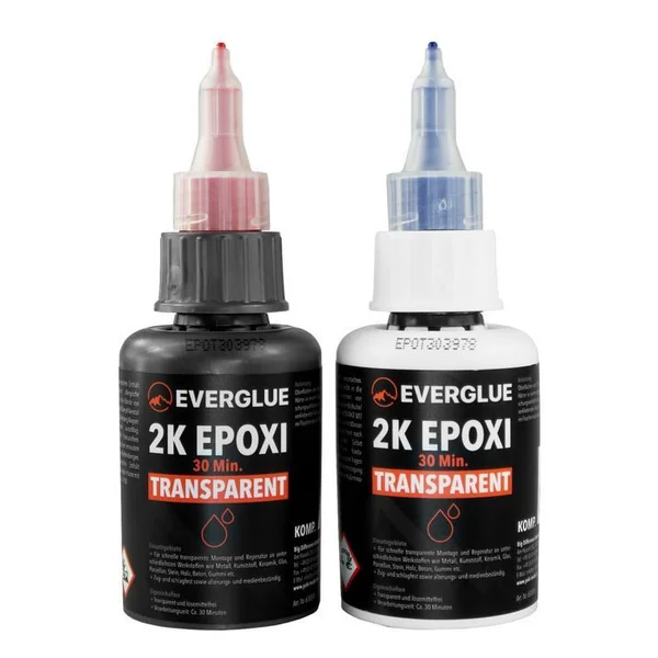 Une fois durci, l’époxy Everglue 30 minutes résiste en permanence à l’eau, à l’essence et à l’huile. Les domaines d’application typiques sont, par exemple, pour la construction de véhicules, la construction de bateaux, la construction de modèles réduits, la construction de couteaux et la bijouterie et la bijouterie.