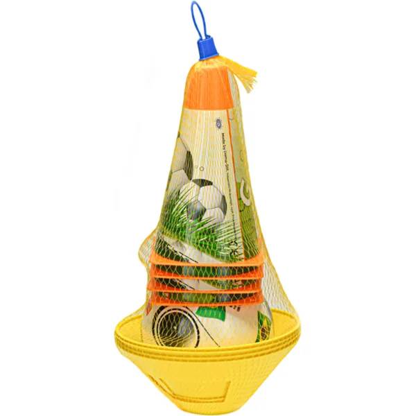 Cônes de football 18cm 4pcs + jalons 4pcs avec ballon 12cm