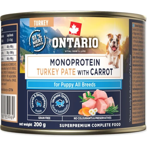 Conserve Ontario Puppy monoprotein pâté de dinde avec carottes 200g