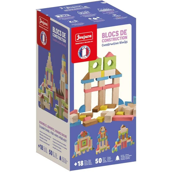 Construire – Blocs de Construction – 50 pièces en bois : Jeu de construction en hêtre massif pour réaliser de nombreuses constructions toutes les plus créatives et imaginatives les unes que les autres. Coffret carton : 14 x 28 x 14 cm. A partir de 18 mois.