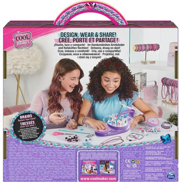 Avec le tisseur Cool Maker 3 en 1, vous pouvez créer de magnifiques bracelets d’amitié ainsi que des colliers. Insérez les bobines colorées dans la machine à tisser selon les modèles fournis et réalisez en un rien de temps un bracelet ou un collier de qualité. Il contient désormais des perles d’amitié scintillantes exclusives.