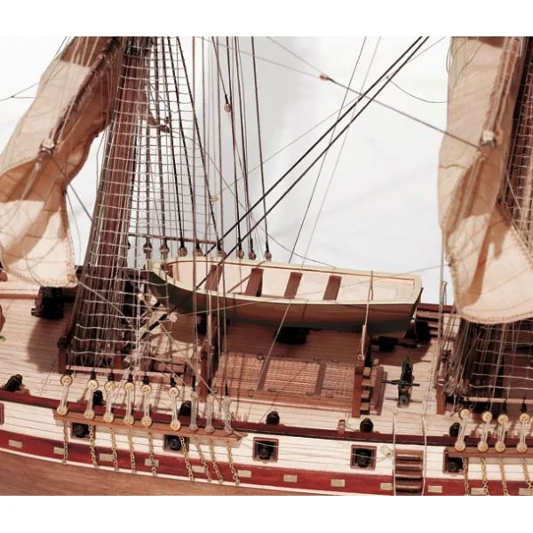 Maquette de bateau en bois représentant un bateau Corsair Une fois en possession des corsaires, ce brick marchand fut transformé et armé de 16 canons et de 4 fauconneaux, ce qui leur permettait de commettre leurs forfaits avec davantage de garanties de succès. Le « métier » de corsaire était souvent exercé avec l’autorisation des États qui leur donnaient une lettre de marque à cette fin. Contient : – Bateau en boit à monté. – Manuel de montage. Descriptif : Longueur : 750mm Hauteur : 580mm Echelle : 1/80 Marque : OcCre Référence : 13600 EAN : 2000000032597 |